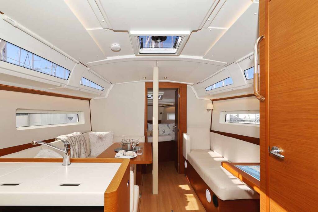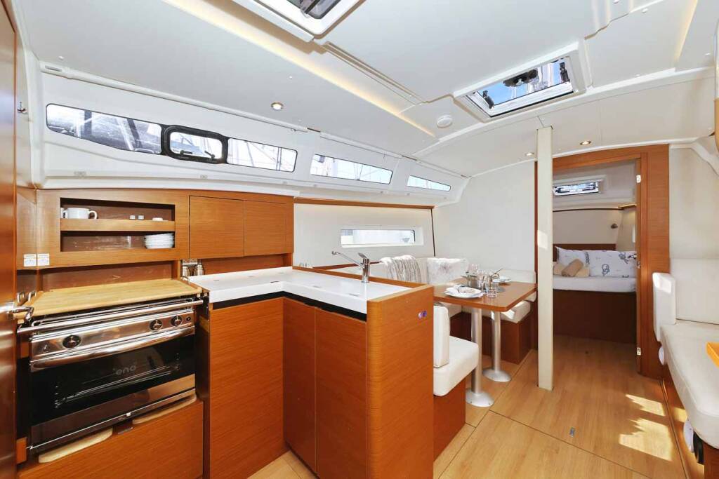 Sailing yacht Sun Odyssey 380 Performance Mymia, built in 2023 is anchored in the Marina Kornati, Biograd, Zadar region, Croatia. It has 3 cabins, can accommodate 6 + 2 people and has 2 toilets. Bed linen and kitchen equipment are included in the price.