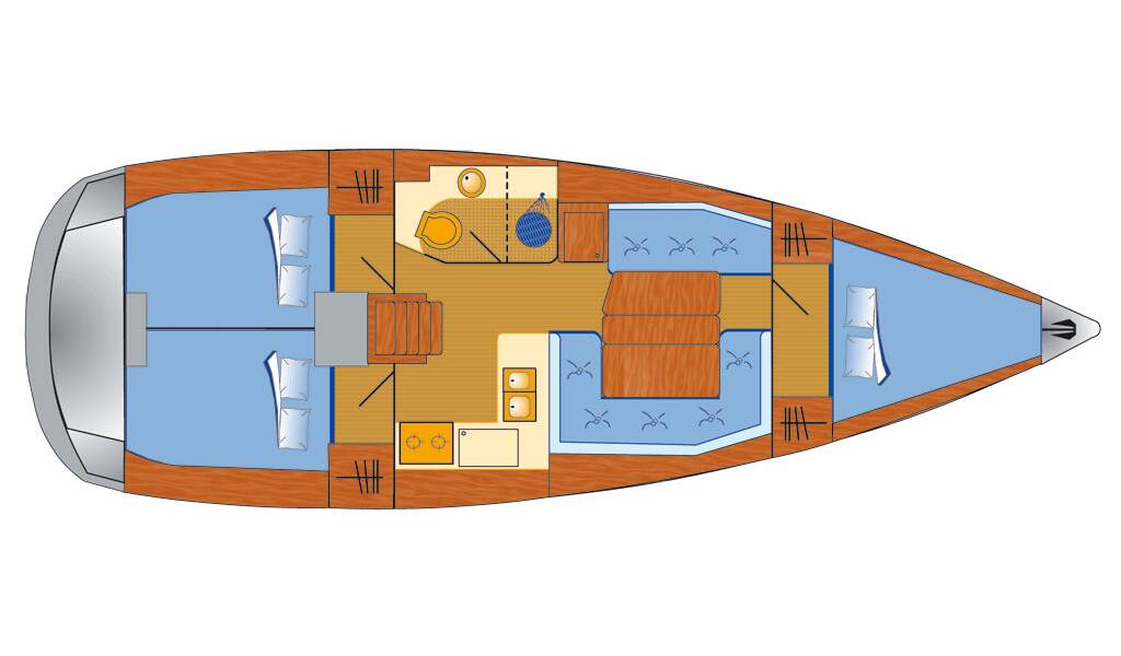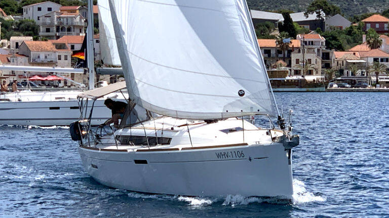Sailing yacht Sun Odyssey 389 Amadeus, built in 2018 is anchored in the Marina Frapa, Rogoznica, Šibenik region, Croatia. It has 3 cabins, can accommodate 6 + 2 people and has 1 toilets. Bed linen and kitchen equipment are included in the price.