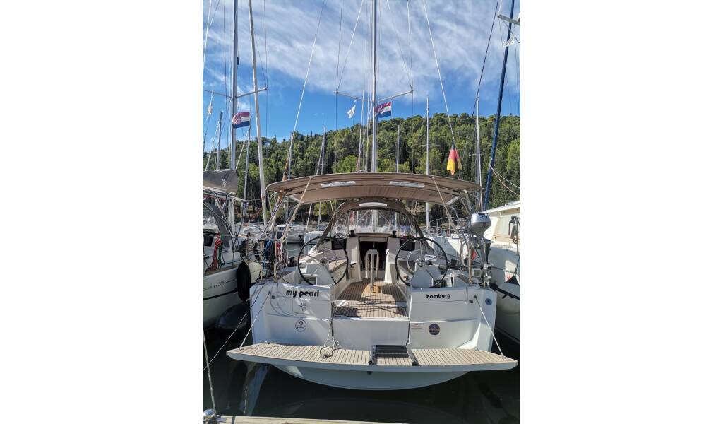 Sailing yacht Sun Odyssey 389 My Pearl, built in 2017 is anchored in the ACI Marina Trogir, Split region, Croatia. It has 3 cabins, can accommodate 6 + 2 people and has 1 toilets. Bed linen and kitchen equipment are included in the price.