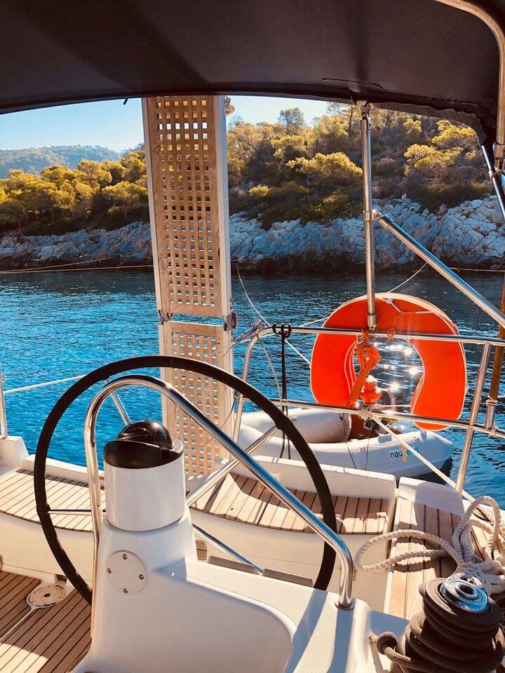 Sailing yacht Sun Odyssey 39i Bookie Too, built in 2007 is anchored in the Nautical Athletic Club of Perama, Athens area/Saronic/Peloponese, Greece. It has 3 cabins, can accommodate 6 + 2 people and has 1 toilets. Bed linen and kitchen equipment are included in the price.
