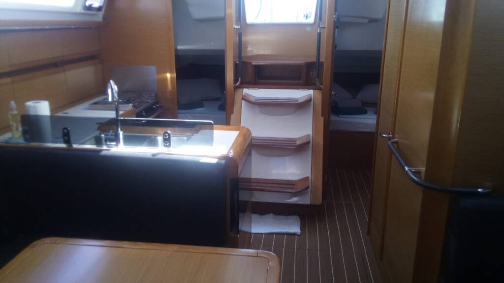Sailing yacht Sun Odyssey 409 Piedanlo, built in 2013 is anchored in the Portisco, Sardinia, Italy. It has 3 cabins, can accommodate 6 + 2 people and has 2 toilets. Bed linen and kitchen equipment are included in the price.