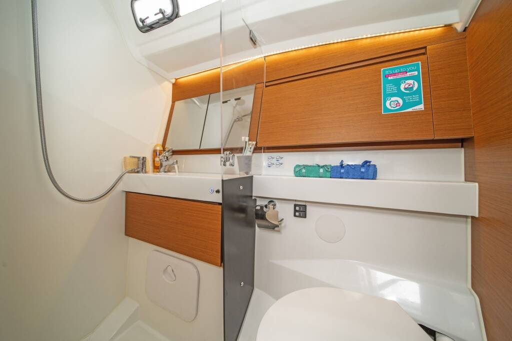 Sailing yacht Sun Odyssey 410 Aella, built in 2022 is anchored in the Skiathos, Skiathos/Sporades, Volos, Greece. It has 3 cabins, can accommodate 6 + 2 people and has 2 toilets. Bed linen and kitchen equipment are included in the price.