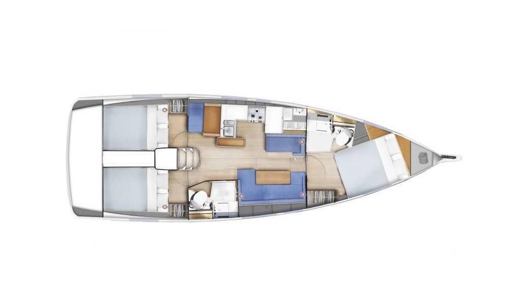 Sailing yacht Sun Odyssey 410 Aris, built in 2020 is anchored in the Lavrion, main port, Athens area/Saronic/Peloponese, Greece. It has 3 cabins, can accommodate 6 people and has 2 toilets. Bed linen and kitchen equipment are included in the price.