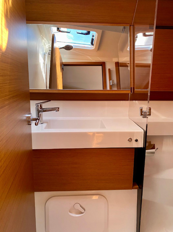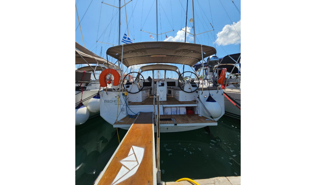 Sailing yacht Sun Odyssey 410 Baghera, built in 2023 is anchored in the Lefkas, D-Marin, Ionian Islands, Greece. It has 3 cabins, can accommodate 6 + 2 people and has 2 toilets. Bed linen and kitchen equipment are included in the price.