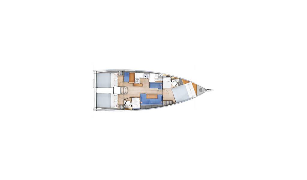 Sailing yacht Sun Odyssey 410 Emotion, built in 2019 is anchored in the Lavrion, main port, Athens area/Saronic/Peloponese, Greece. It has 3 cabins, can accommodate 6 + 2 people and has 2 toilets. Bed linen and kitchen equipment are included in the price.