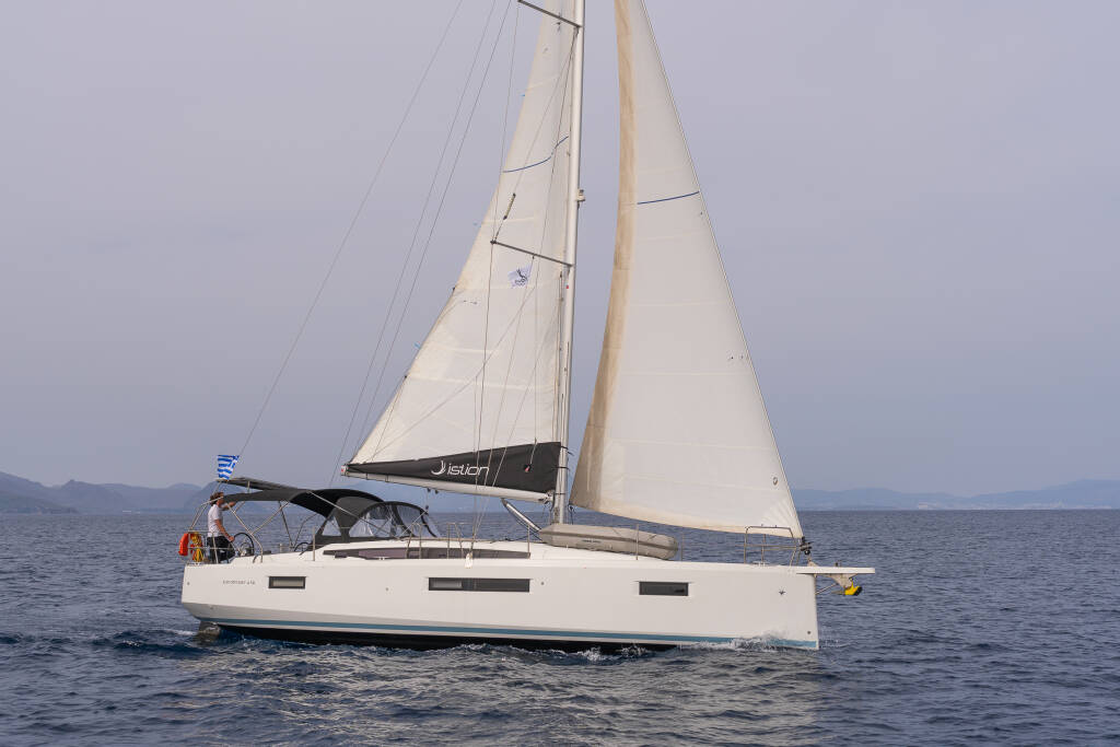 Sailing yacht Sun Odyssey 410 Geva X, built in 2020 is anchored in the Kos, Kos Marina, Dodecanese, Greece. It has 3 cabins, can accommodate 6 people and has 2 toilets. Bed linen and kitchen equipment are included in the price.