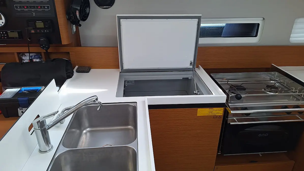 Sailing yacht Sun Odyssey 410 Iliada, built in 2023 is anchored in the Palairos, Ionian Islands, Greece. It has 3 cabins, can accommodate 0 people and has 2 toilets. Bed linen and kitchen equipment are included in the price.