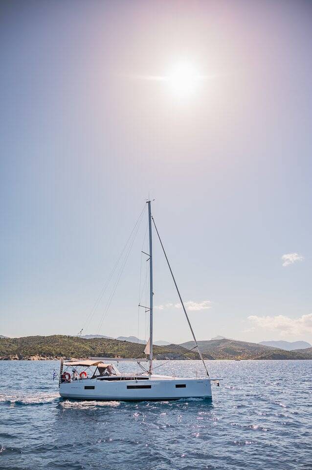 Sailing yacht Sun Odyssey 410 Irene, built in 2020 is anchored in the Athens, Alimos marina, Athens area/Saronic/Peloponese, Greece. It has 3 cabins, can accommodate 6 + 2 people and has 2 toilets. Bed linen and kitchen equipment are included in the price.
