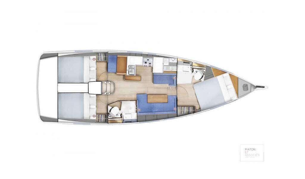 Sailing yacht Sun Odyssey 410 Lucia, built in 2023 is anchored in the Pylos, Pylos Marina, Ionian Islands, Greece. It has 3 cabins, can accommodate 6 + 2 people and has 2 toilets. Bed linen and kitchen equipment are included in the price.