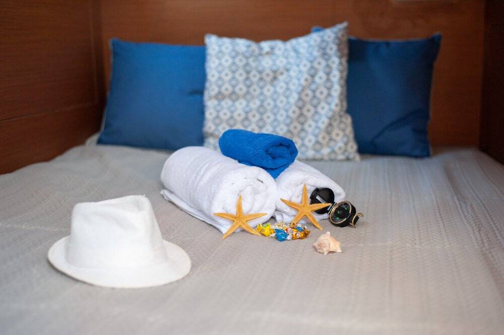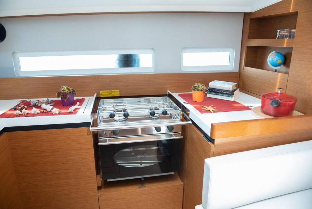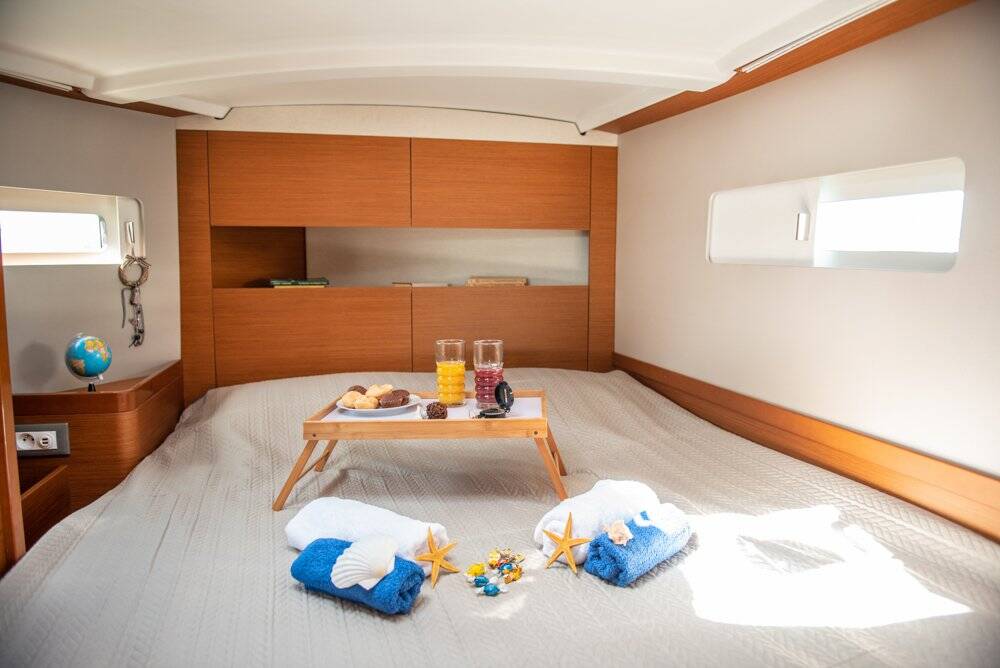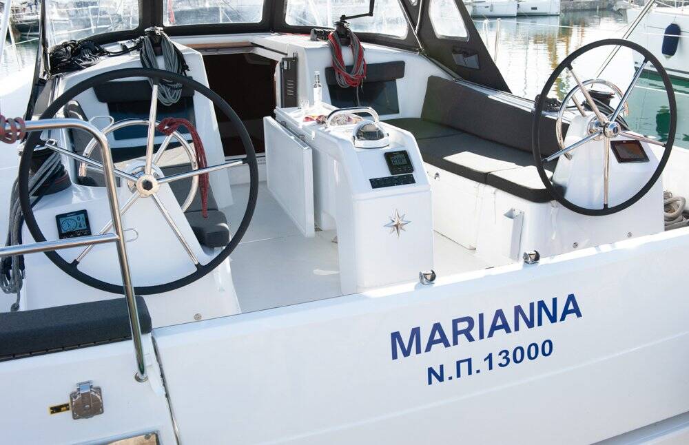 Sailing yacht Sun Odyssey 410 Marianna, built in 2022 is anchored in the Corfu, Gouvia Marina, Ionian Islands, Greece. It has 3 cabins, can accommodate 6 + 2 people and has 2 toilets. Bed linen and kitchen equipment are included in the price.