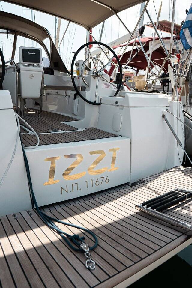 Sailing yacht Sun Odyssey 419 Izzi, built in 2017 is anchored in the Lefkas, D-Marin, Ionian Islands, Greece. It has 3 cabins, can accommodate 6 + 2 people and has 2 toilets. Bed linen and kitchen equipment are included in the price.