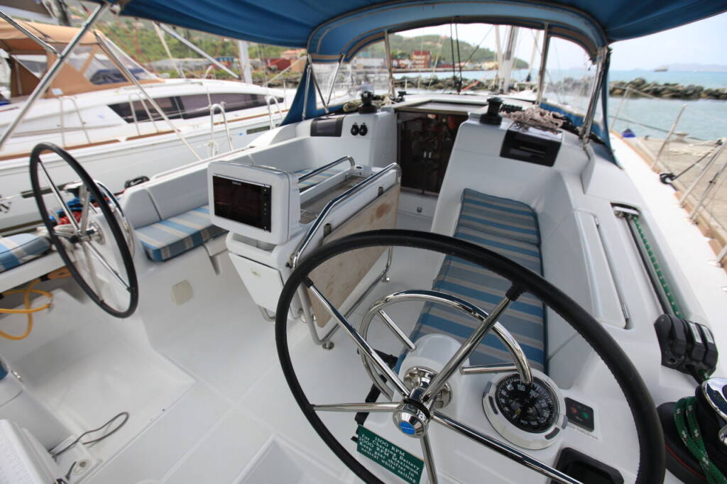 Sailing yacht Sun Odyssey 419 Jillsee, built in 2017 is anchored in the BVI, Tortola, Ritter House Marina, British Virgin Islands, British Virgin Islands. It has 3 cabins, can accommodate 6 + 2 people and has 1 toilets. Bed linen and kitchen equipment are included in the price.
