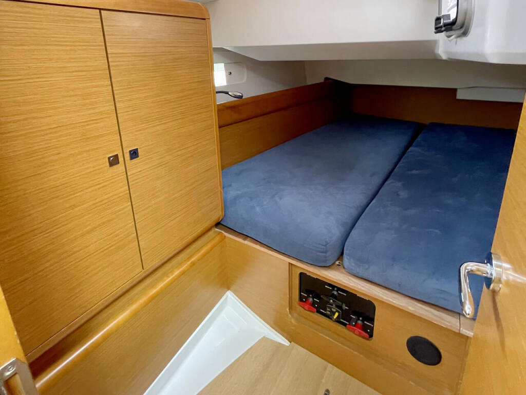 Sailing yacht Sun Odyssey 439 Bruce, built in 2014 is anchored in the Heiligenhafen, Schleswig-Holstein, Germany. It has 4 cabins, can accommodate 8 people and has 2 toilets. Bed linen and kitchen equipment are included in the price.