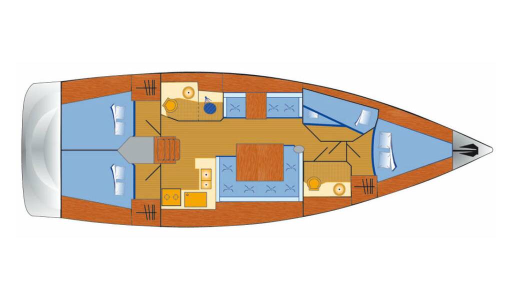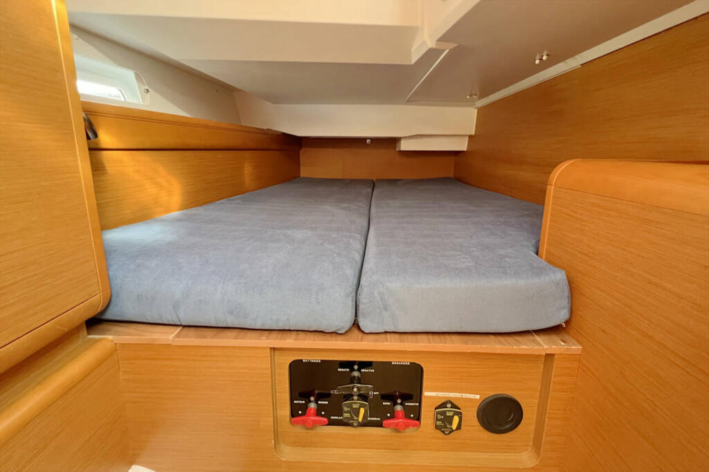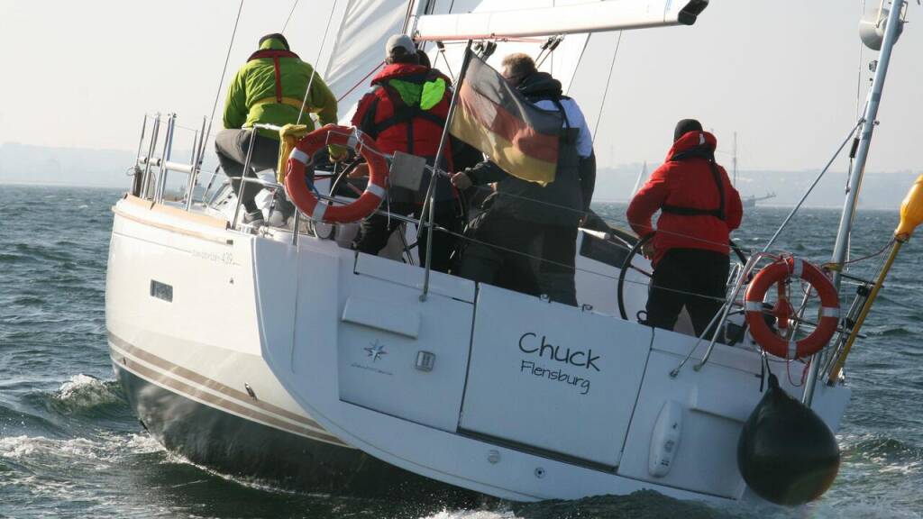 Sailing yacht Sun Odyssey 439 Chuck, built in 2014 is anchored in the Marina Flensburg Sonwik, Schleswig-Holstein, Germany. It has 4 cabins, can accommodate 8 people and has 2 toilets. Bed linen and kitchen equipment are included in the price.