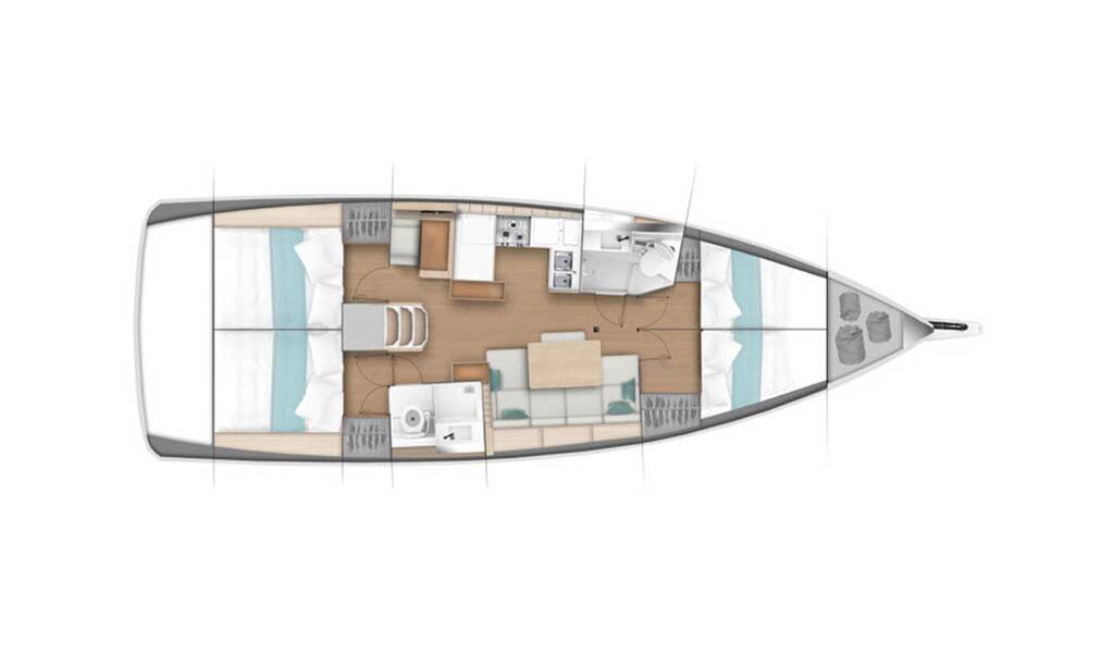 +provisioning ; Crew on board must have their own toilets/ showers. If either a skipper or a hostess/cook is on board, 1 double cabin will be required for him/her. If both a skipper and a hostess/cook are on board, 1 double cabin and 1 forepeak cabin will be required for them. Exceptions exists for specific layouts, Sales Agents will provide more details about the different boat models. - Payable at the base