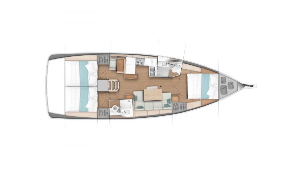 Sailing yacht Sun Odyssey 440 Dreamcatcher, built in 2024 is anchored in the Marina Kastela, Split region, Croatia. It has 3 cabins, can accommodate 6 + 2 people and has 2 toilets. Bed linen and kitchen equipment are included in the price.