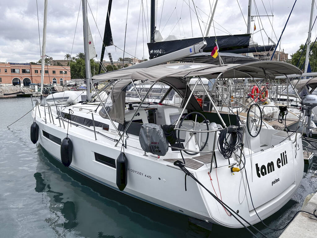 Sailing yacht Sun Odyssey 440 tam elli, built in 2024 is anchored in the Palma de Mallorca, La Lonja, Balearic Islands, Spain. It has 4 cabins, can accommodate 8 + 1 people and has 2 toilets. Bed linen and kitchen equipment are included in the price.