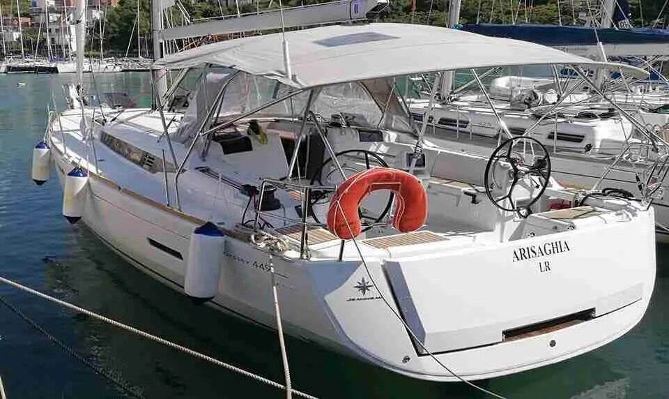 Sailing yacht Sun Odyssey 449 Arisaghia, built in 2017 is anchored in the Agropoli, Campania, Italy. It has 4 cabins, can accommodate 8 + 2 people and has 2 toilets. Bed linen and kitchen equipment are included in the price.
