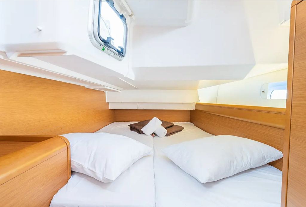 Sailing yacht Sun Odyssey 449 Sante, built in 2018 is anchored in the Lefkas, D-Marin, Ionian Islands, Greece. It has 4 cabins, can accommodate 8 + 2 people and has 2 toilets. Bed linen and kitchen equipment are included in the price.