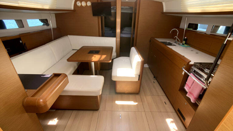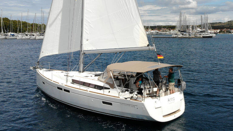 Sailing yacht Sun Odyssey 479 Anna, built in 2018 is anchored in the Marina Frapa, Rogoznica, Šibenik region, Croatia. It has 4 cabins, can accommodate 8 + 2 people and has 4 toilets. Bed linen and kitchen equipment are included in the price.