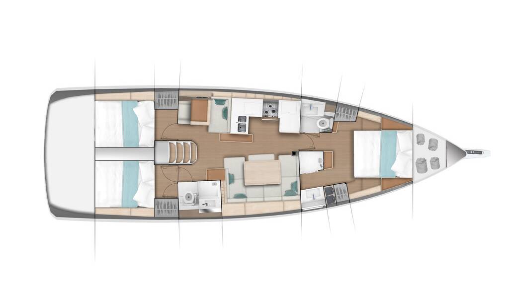 Sailing yacht Sun Odyssey 490 Alfader, built in 2020 is anchored in the Marina Kremik, Primosten, Šibenik region, Croatia. It has 3 cabins, can accommodate 6 + 2 people and has 2 toilets. Bed linen and kitchen equipment are included in the price.