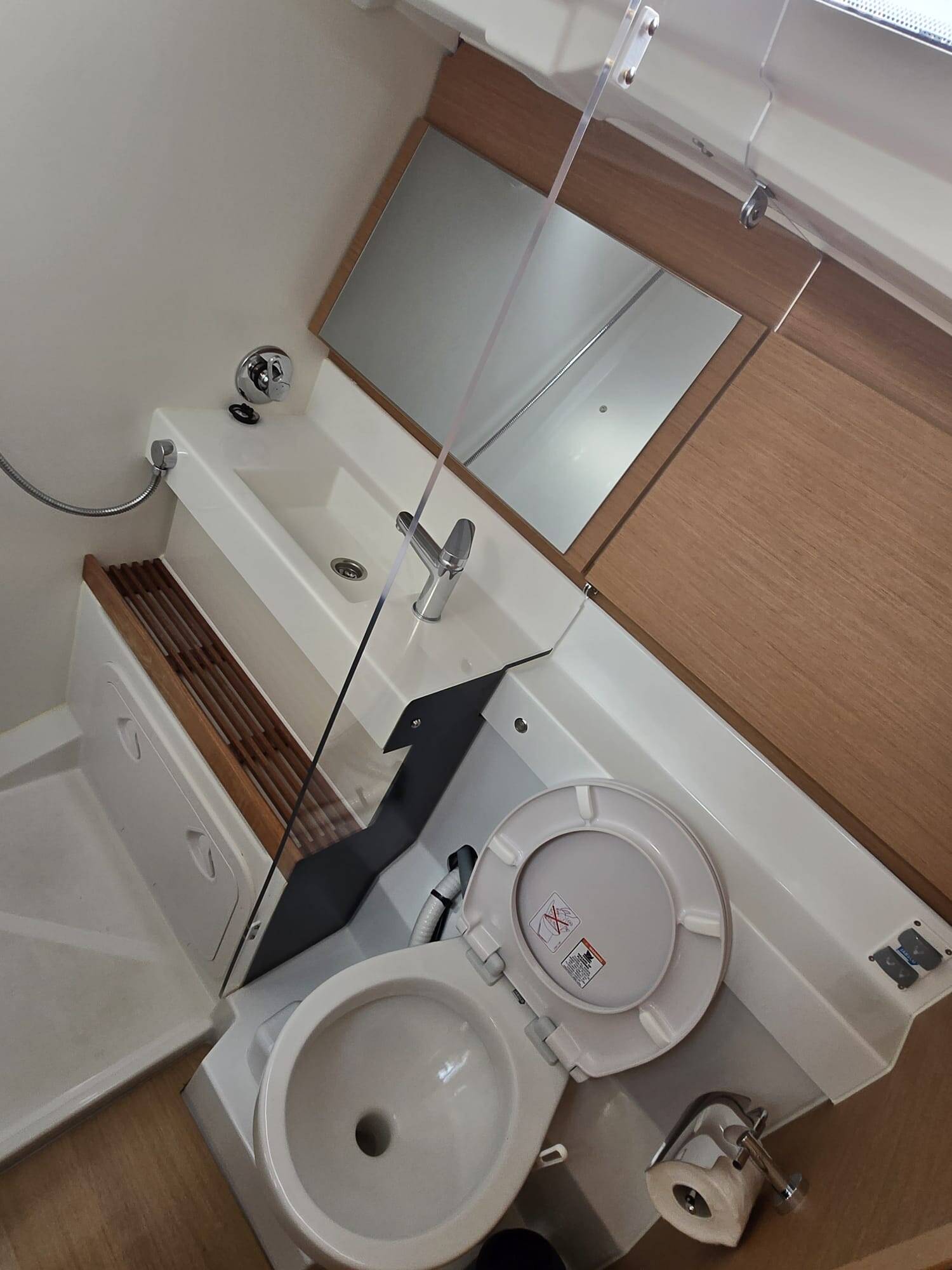 Sailing yacht Sun Odyssey 490 Sofiya, built in 2024 is anchored in the Marina, Luka Marina (near Trogir), Split region, Croatia. It has 4 + 1 cabins, can accommodate 8 + 2 + 1 people and has 3 + 1 toilets. Bed linen and kitchen equipment are included in the price.