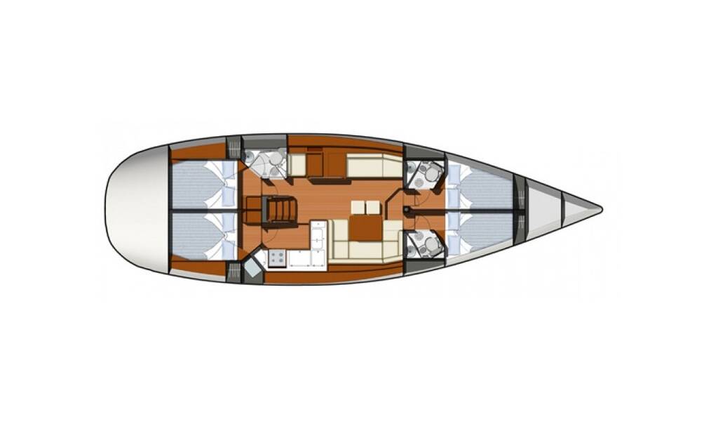Sailing yacht Sun Odyssey 50 DS Samanta, built in 2009 is anchored in the Sukosan, D-Marin Dalmacija Marina, Zadar region, Croatia. It has 4 cabins, can accommodate 8 + 2 people and has 3 toilets. Bed linen and kitchen equipment are included in the price.