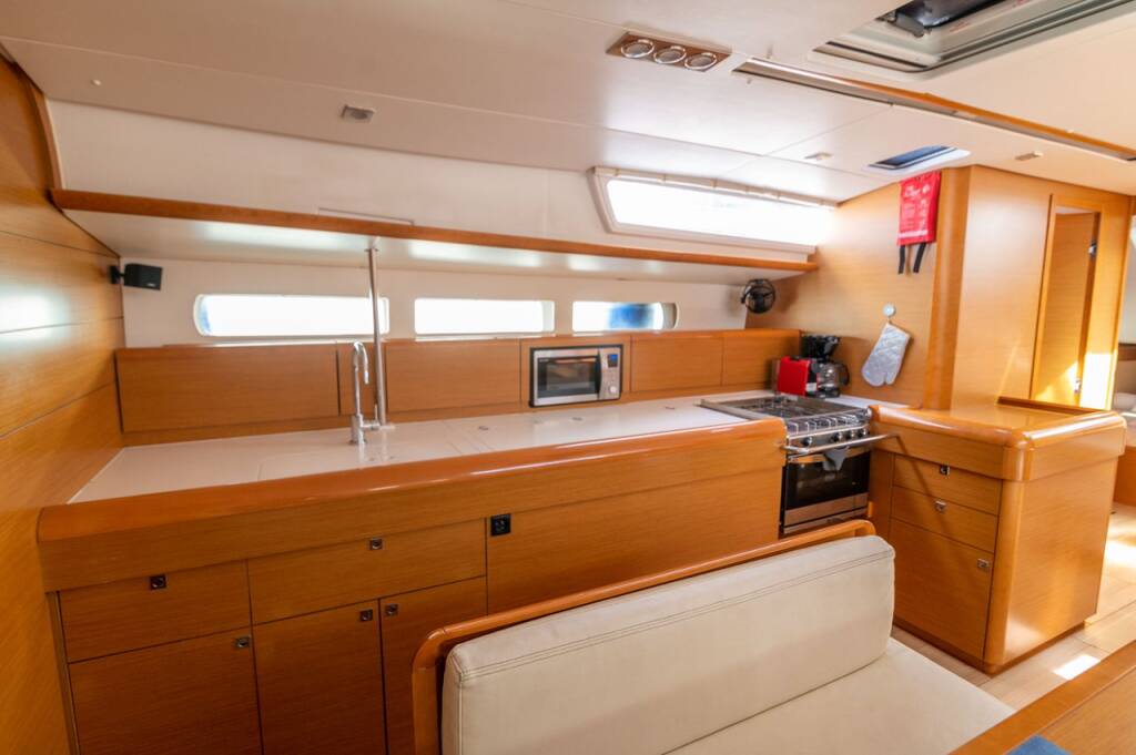 Sailing yacht Sun Odyssey 509 Promise, built in 2015 is anchored in the Athens, Alimos marina, Athens area/Saronic/Peloponese, Greece. It has 5 + 1 cabins, can accommodate 10 + 1 people and has 3 + 1 toilets. Bed linen and kitchen equipment are included in the price.