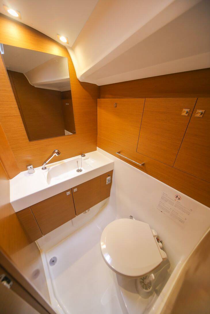 Sailing yacht Sun Odyssey 519 MALAKE, built in 2018 is anchored in the Trogir, Yachtclub Seget (Marina Baotić), Split region, Croatia. It has 5 + 1 cabins, can accommodate 10 + 2 + 1 people and has 3 toilets. Bed linen and kitchen equipment are included in the price.