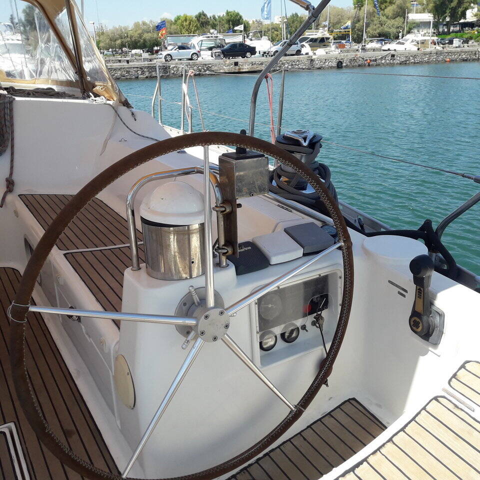 Sailing yacht Sun Odyssey 52.2 Hesiodos, built in 2000 is anchored in the Athens, Alimos marina, Athens area/Saronic/Peloponese, Greece. It has 5 cabins, can accommodate 10 + 2 people and has 5 toilets. Bed linen and kitchen equipment are included in the price.