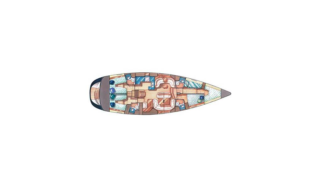 Sailing yacht Sun Odyssey 54 DS Boomerang, built in 2007 is anchored in the Lefkas, Perigiali, Ionian Islands, Greece. It has 5 cabins, can accommodate 11 people and has 4 toilets. Bed linen and kitchen equipment are included in the price.
