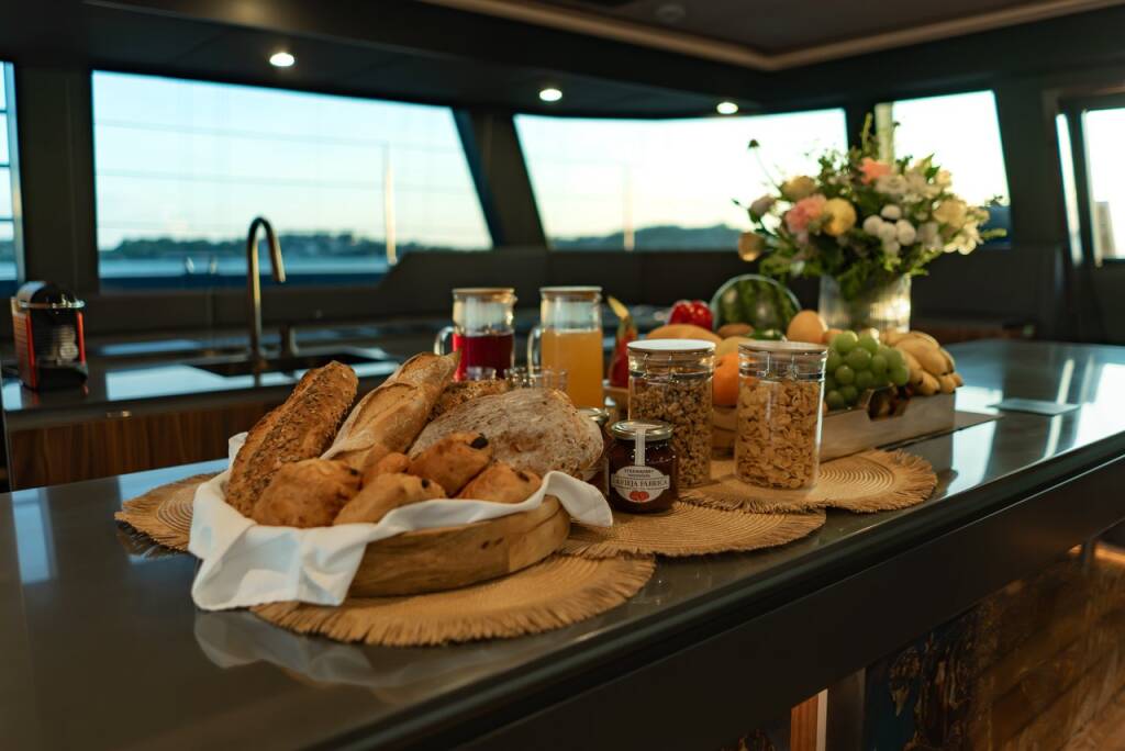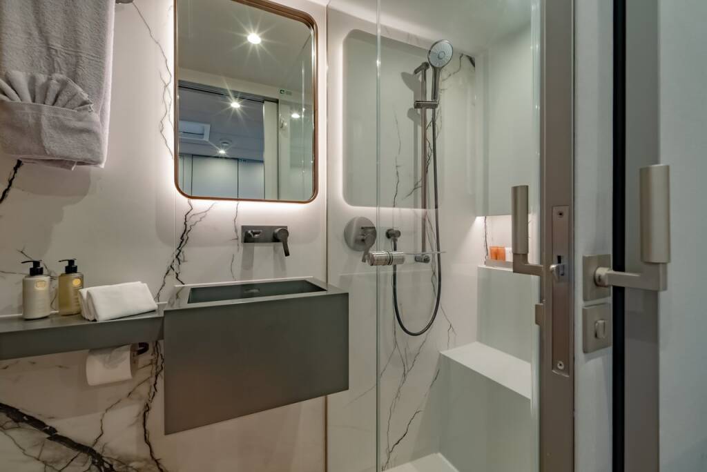 Catamaran Sunreef 60 E E-Motion, built in 2025 is anchored in the Phuket, Royal Phuket Marina, Phuket, Thailand . It has 4 cabins, can accommodate 8 people and has 4 toilets. Bed linen and kitchen equipment are included in the price.