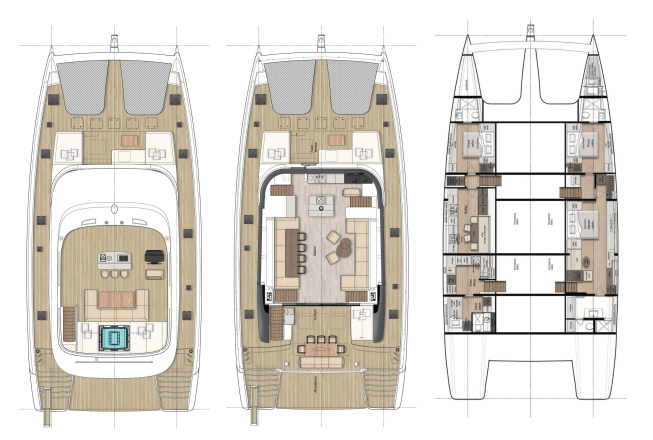 Catamaran Sunreef 80 Nala One, built in 2019 is anchored in the Split, West Coast (Zapadna obala), Split region, Croatia. It has 3 + 3 cabins, can accommodate 6 + 4 people and has 3 toilets. Bed linen and kitchen equipment are included in the price.