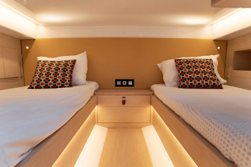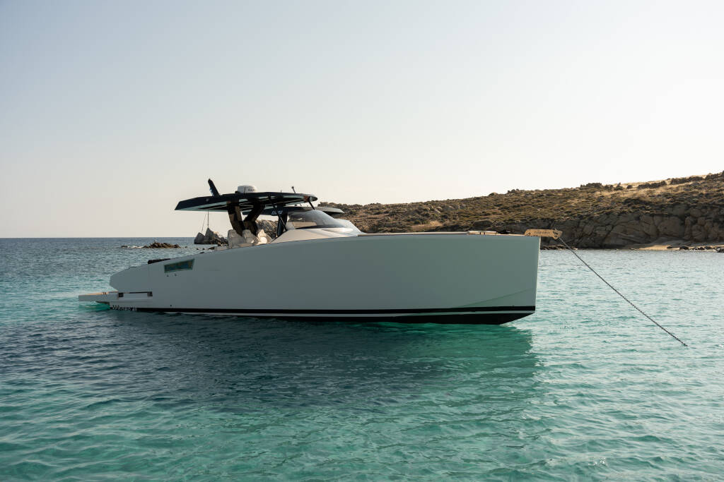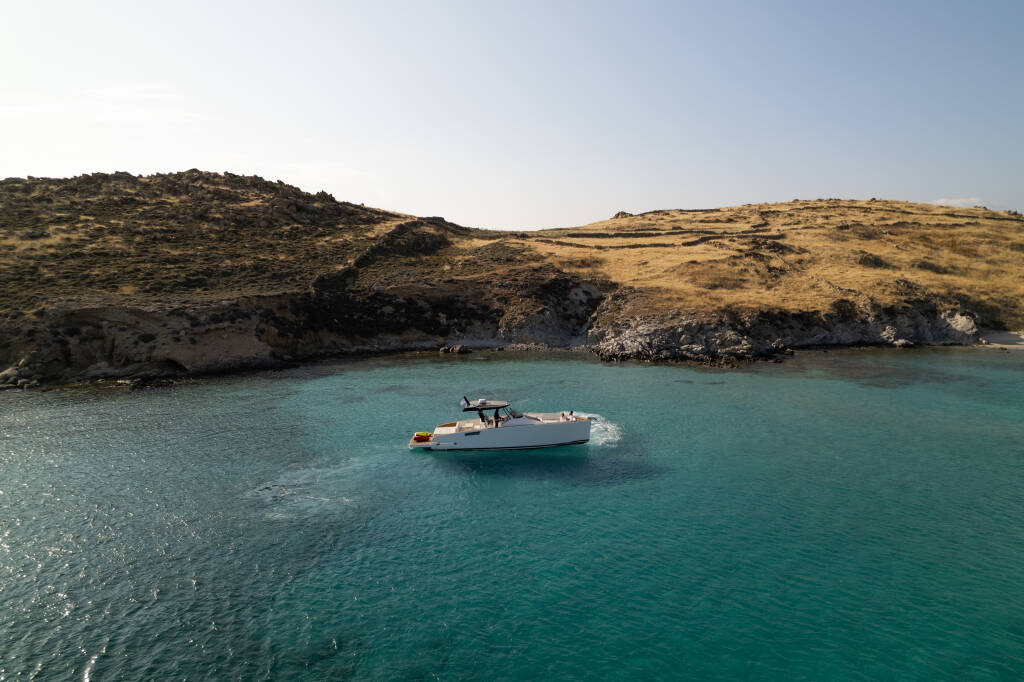 Motor boat Tesoro T40 Yaloou Treasure, built in 2022 is anchored in the Mykonos, Cyclades, Greece. It has 2 cabins, can accommodate 4 people and has 1 toilets. Bed linen and kitchen equipment are included in the price.