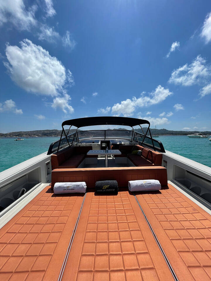 Motor boat Vandutch 55 Goldfinger, built in 2018 is anchored in the Marina di Golfo Aranci, Sardinia, Italy. It has 2 cabins, can accommodate 4 people and has 1 toilets. Bed linen and kitchen equipment are included in the price.
