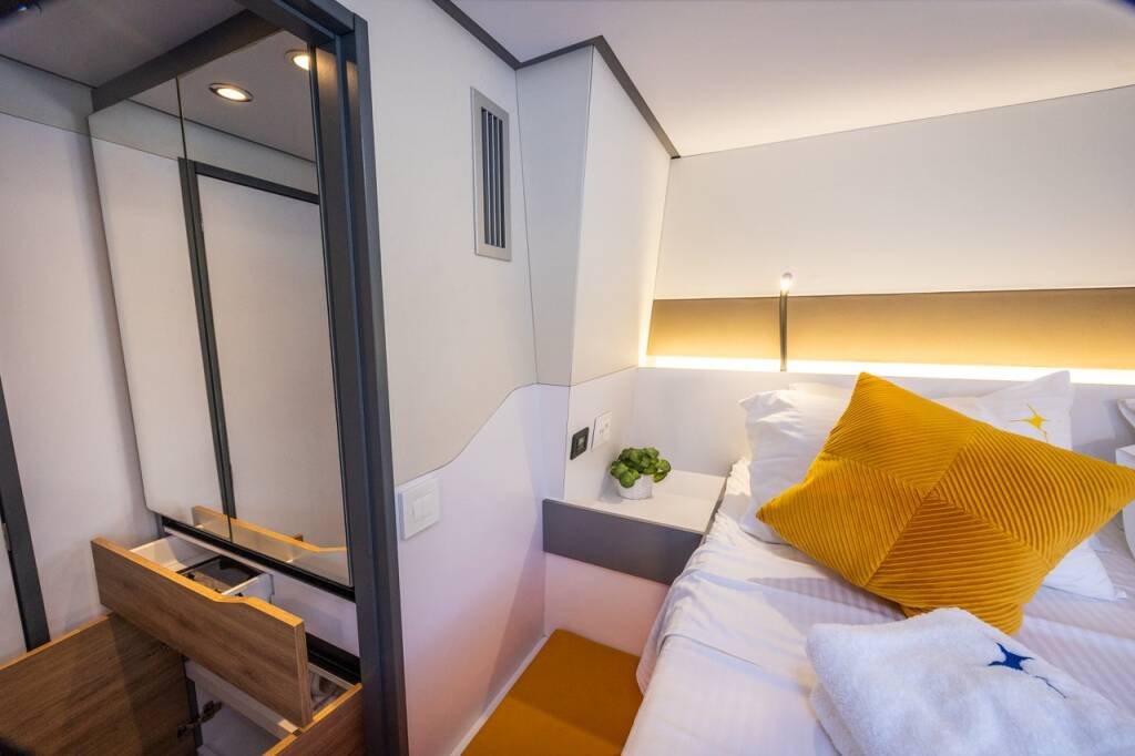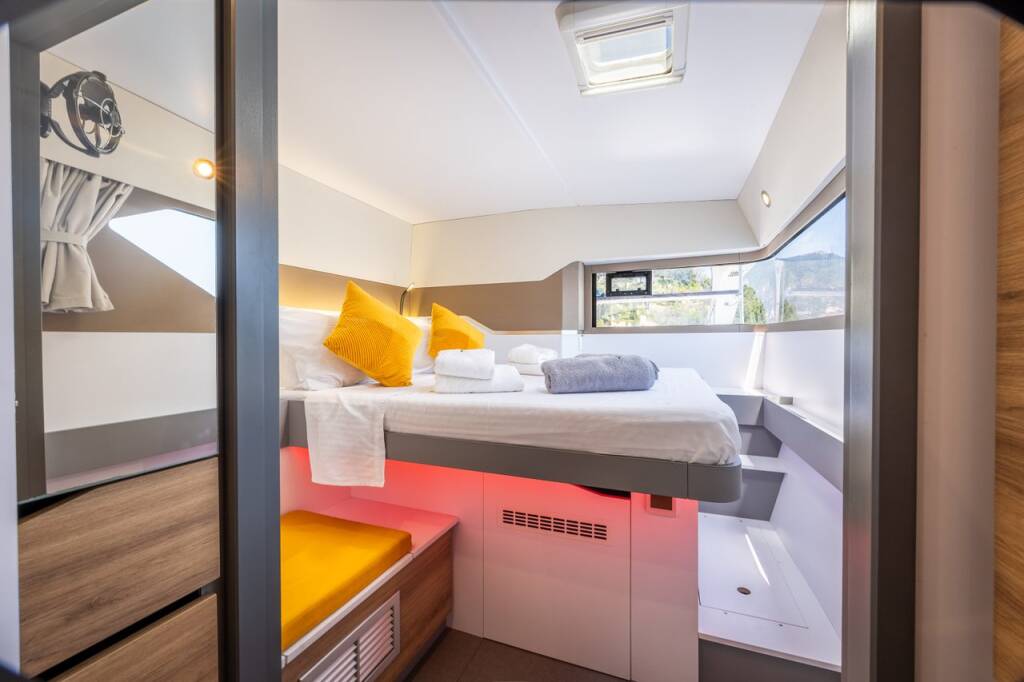 Catamaran Windelo 54 Adventure Stardust, built in 2024 is anchored in the Lefkas, D-Marin, Ionian Islands, Greece. It has 4 + 1 cabins, can accommodate 8 + 1 people and has 2 + 1 toilets. Bed linen and kitchen equipment are included in the price.