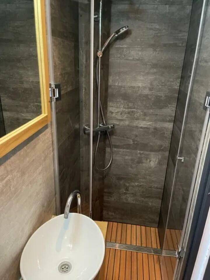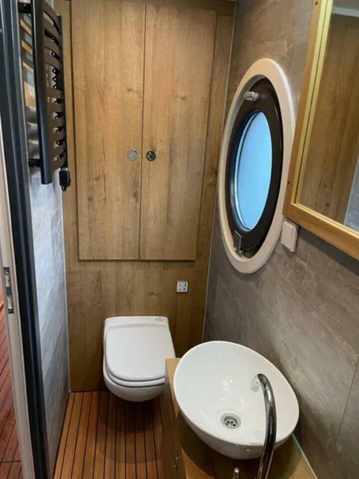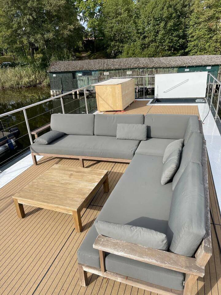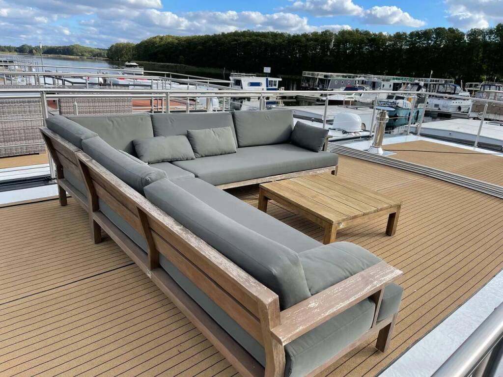 House boat Woma D13 Ariella, built in 2022 is anchored in the Röblinsee Marina, Brandenburg, Germany. It has 2 cabins, can accommodate 7 people and has 1 toilets. Bed linen and kitchen equipment are included in the price.