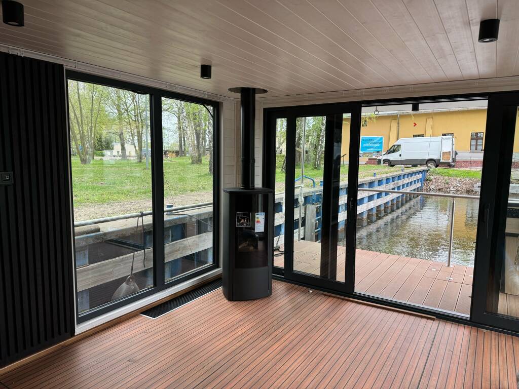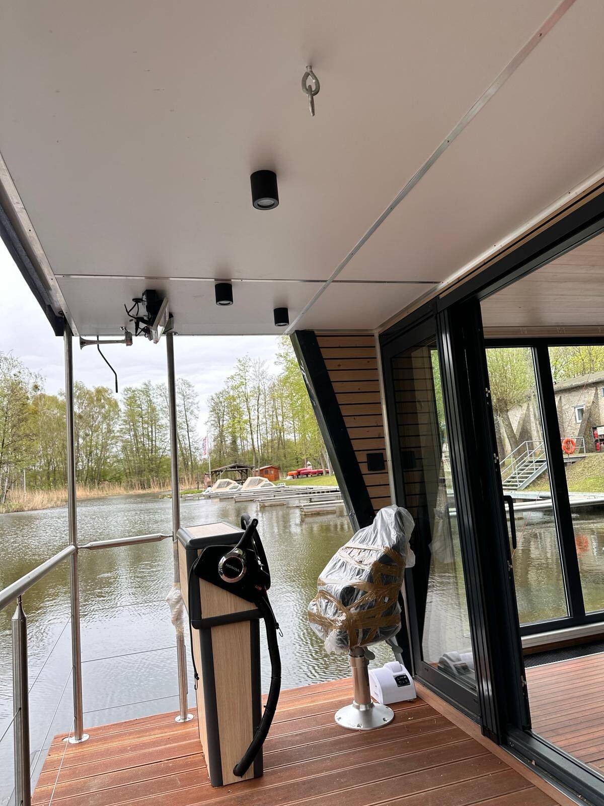 House boat Woma D13 Emsel, built in 2024 is anchored in the Röblinsee Marina, Brandenburg, Germany. It has 2 cabins, can accommodate 4 + 2 people and has 1 toilets. Bed linen and kitchen equipment are included in the price.