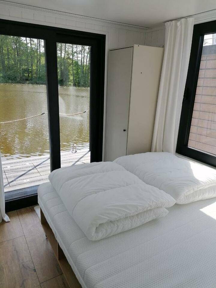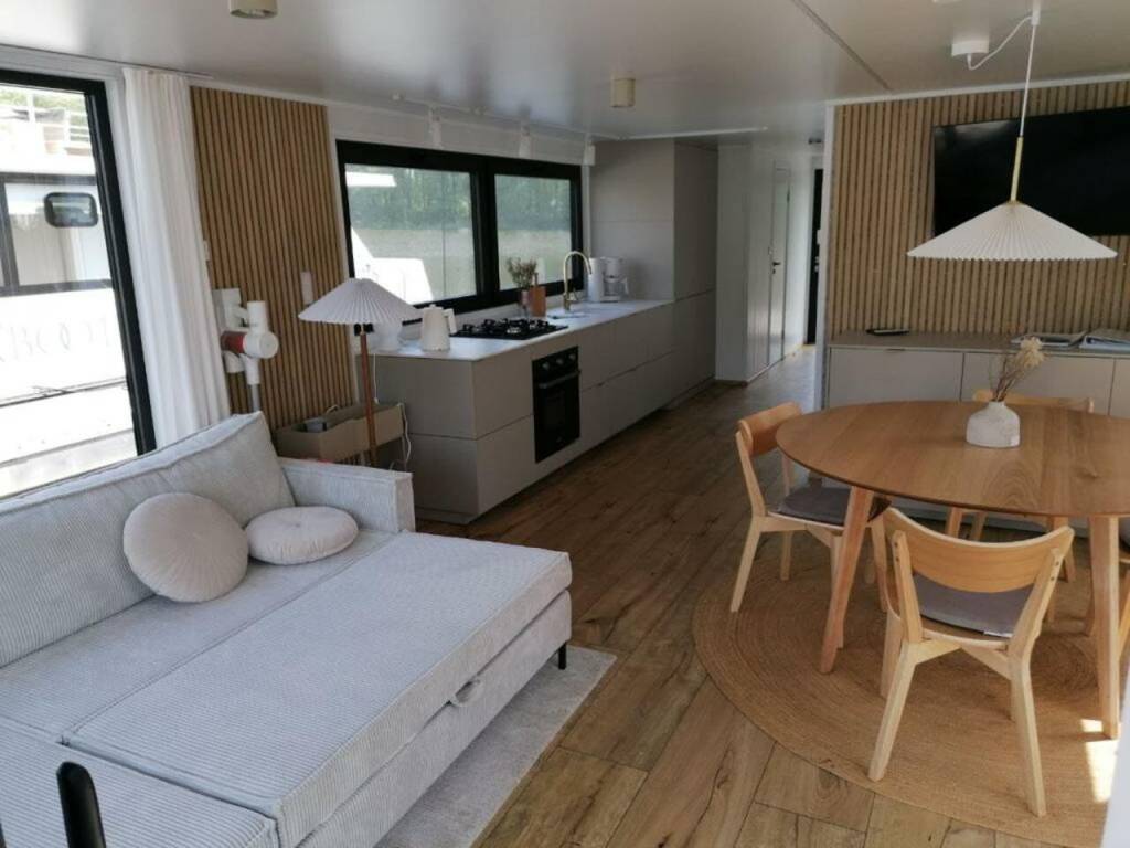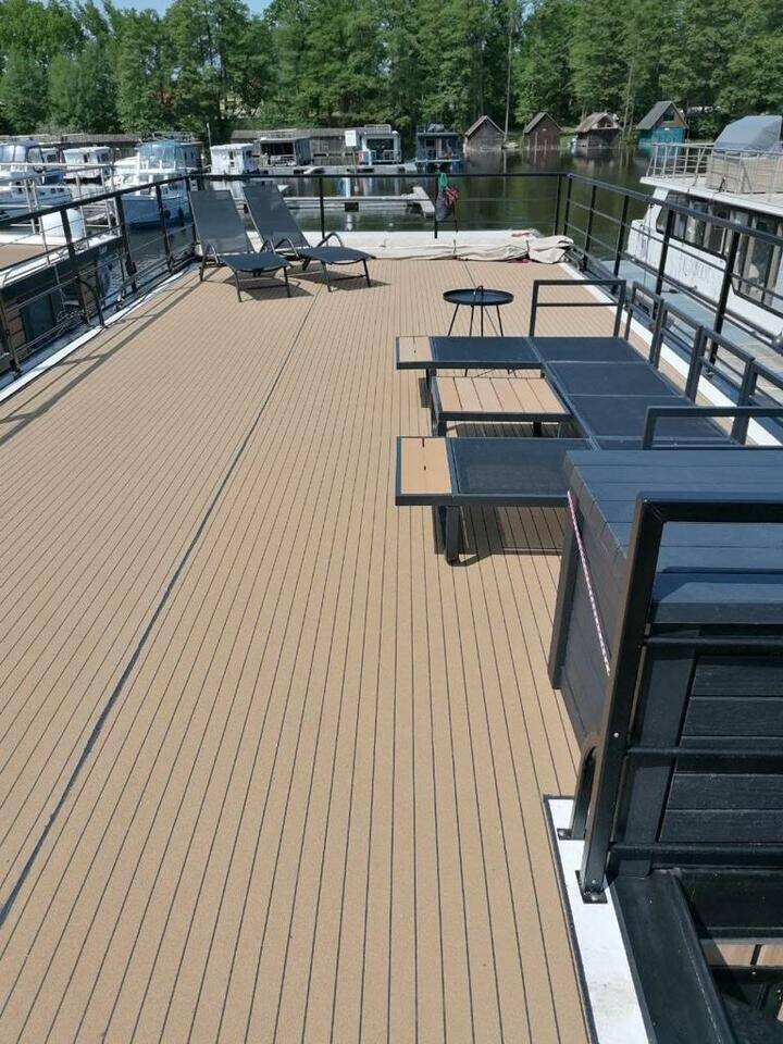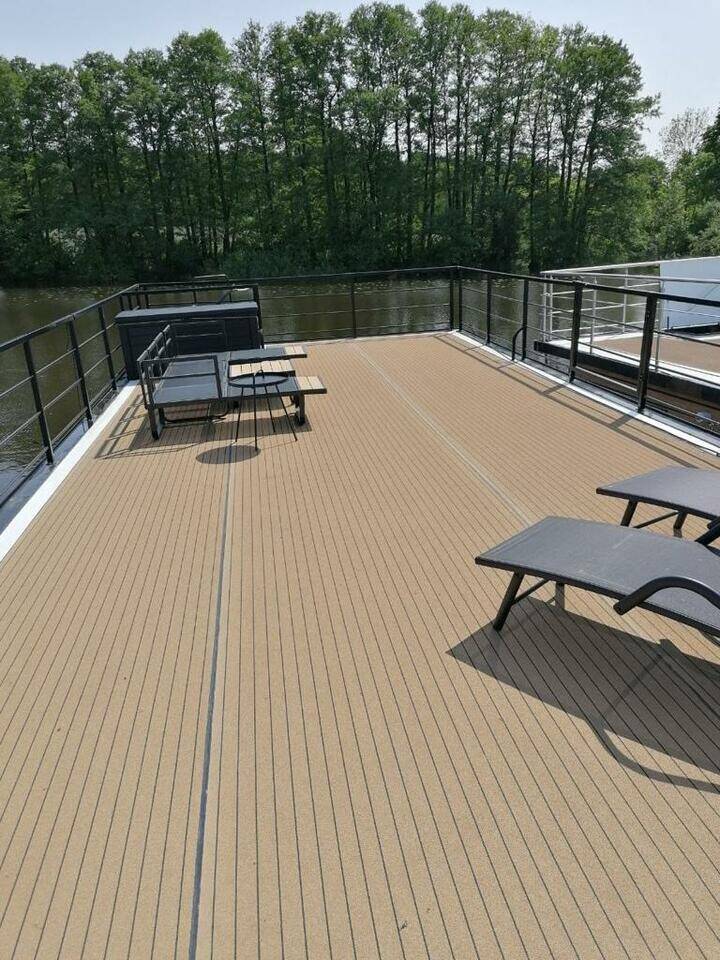 House boat Woma D13 Pina, built in 2021 is anchored in the Röblinsee Marina, Brandenburg, Germany. It has 2 cabins, can accommodate 6 people and has 1 toilets. Bed linen and kitchen equipment are included in the price.