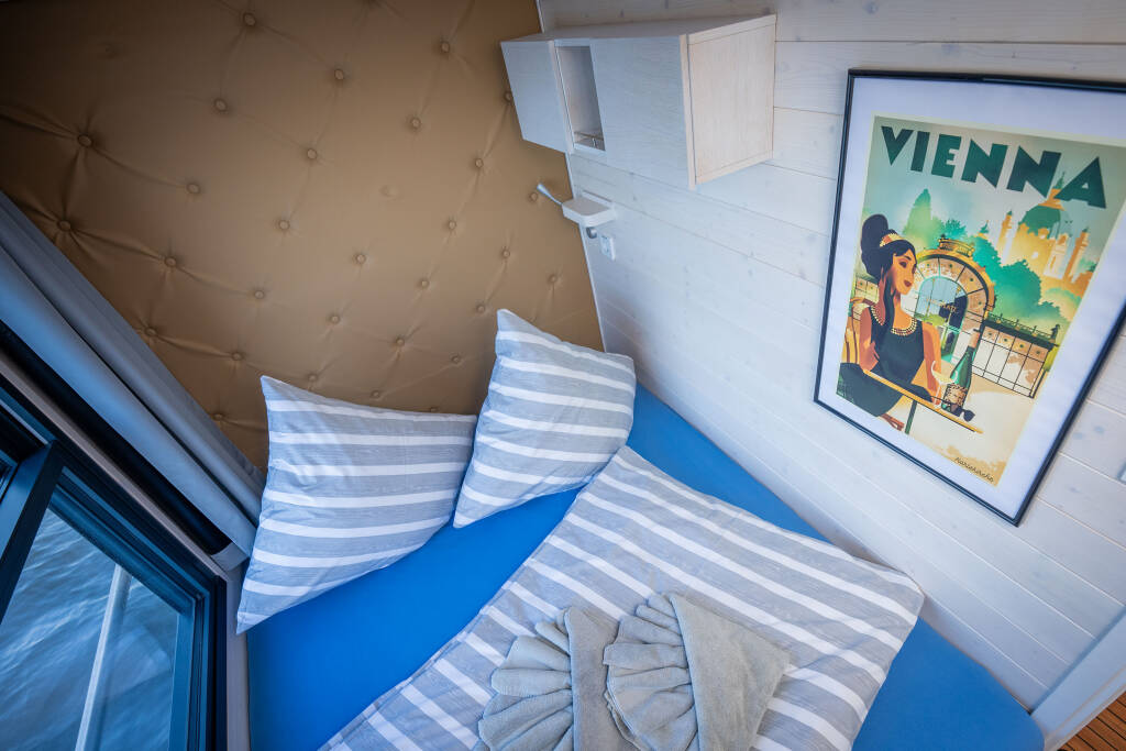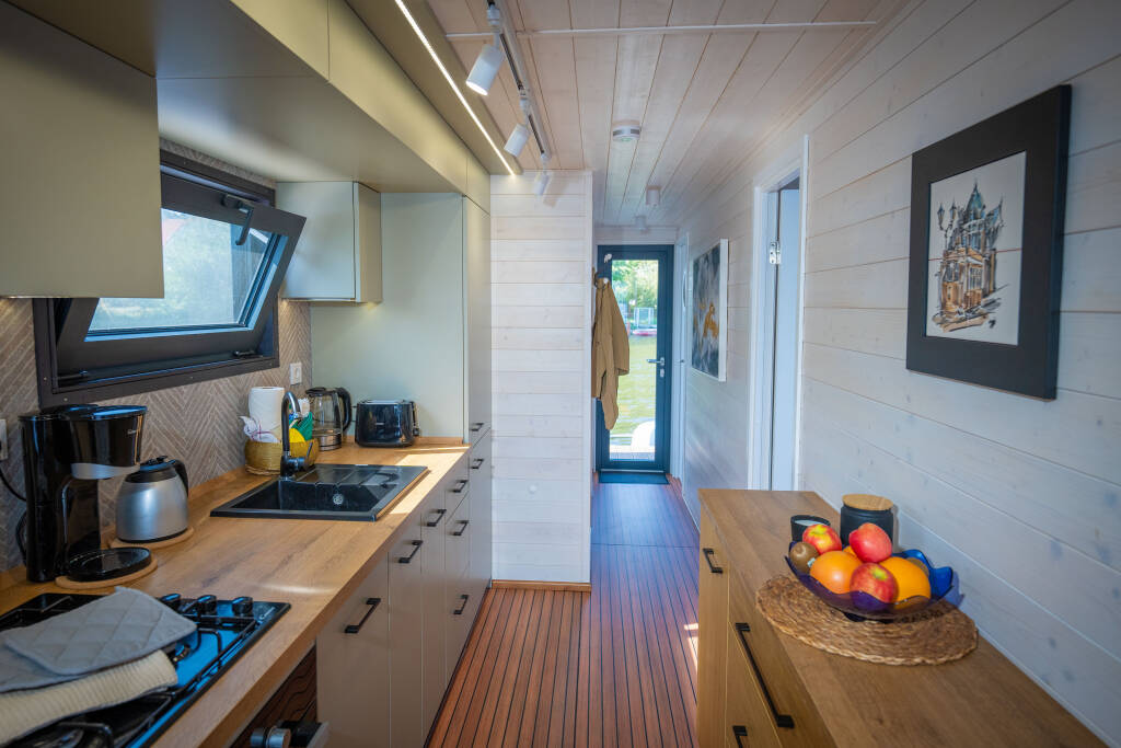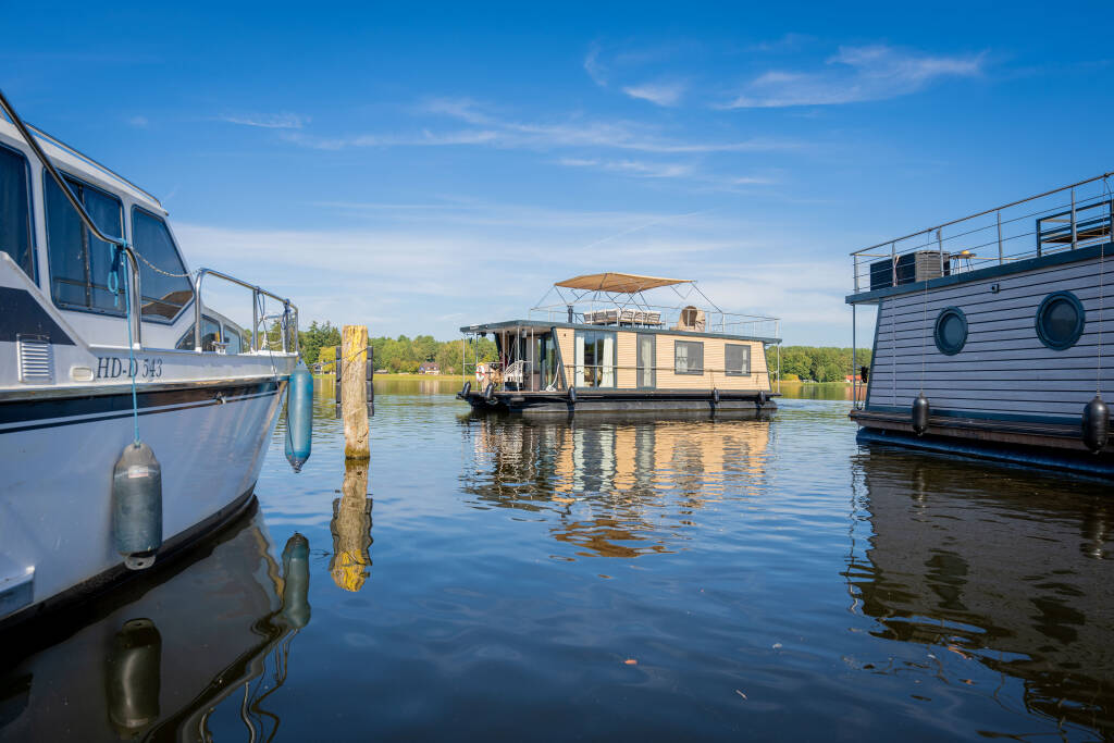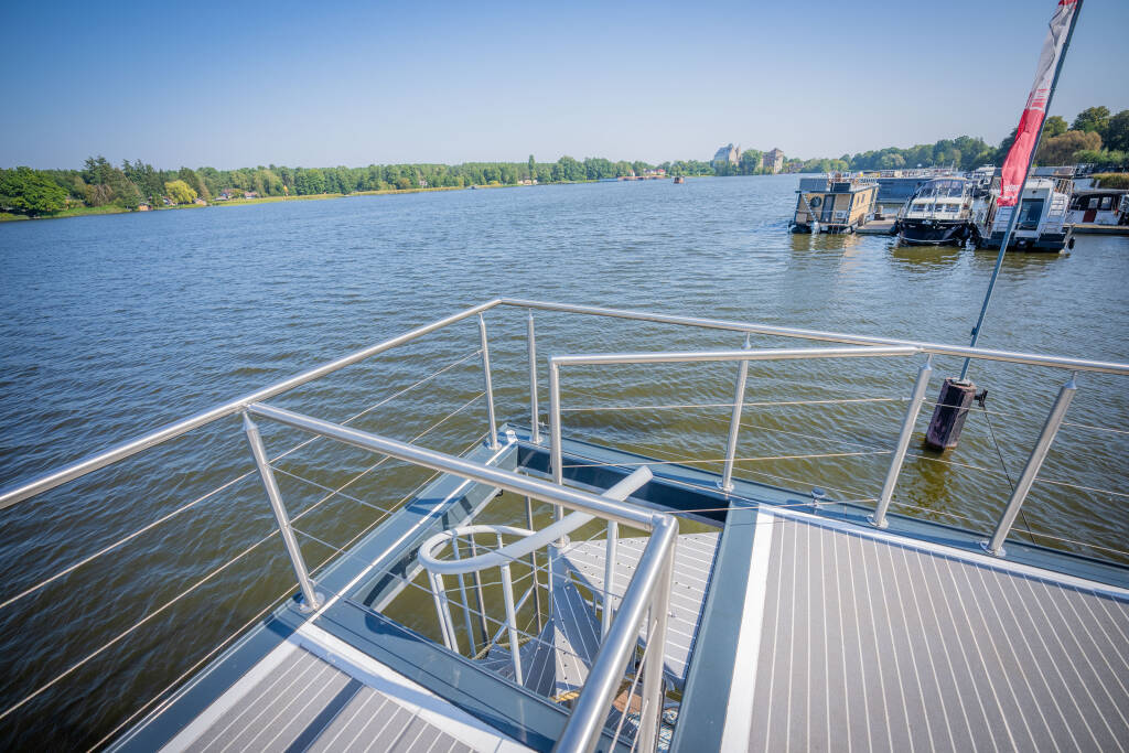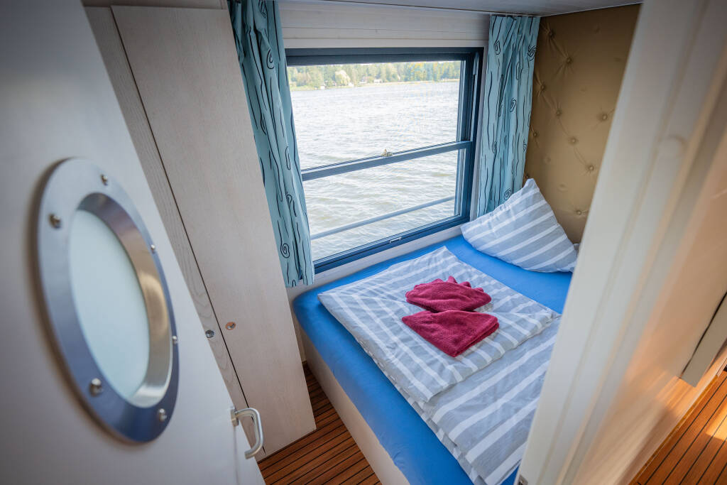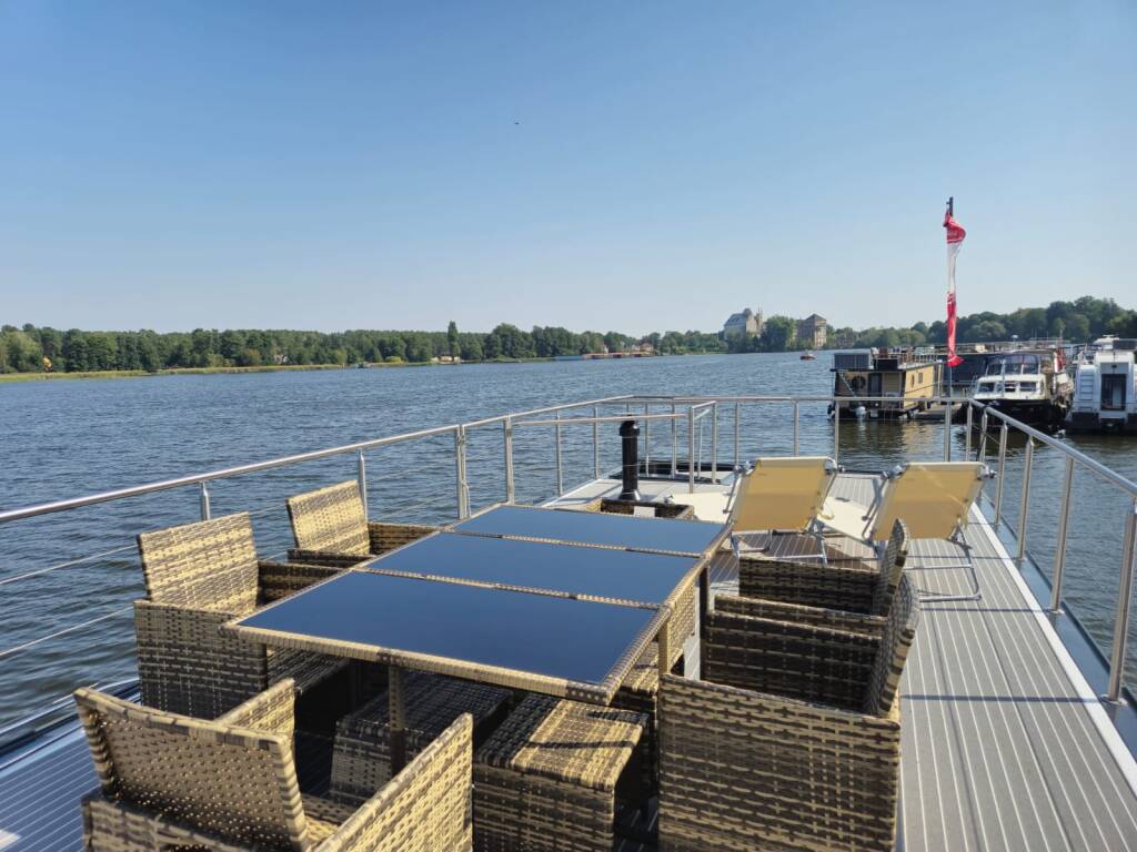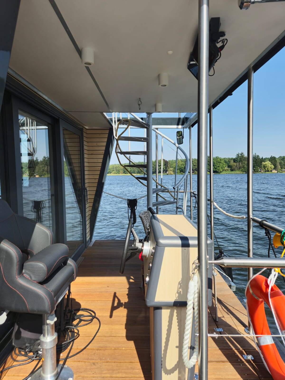 House boat Woma D13 Roxy, built in 2025 is anchored in the Röblinsee Marina, Brandenburg, Germany. It has 2 cabins, can accommodate 4 + 2 people and has 1 toilets. Bed linen and kitchen equipment are included in the price.