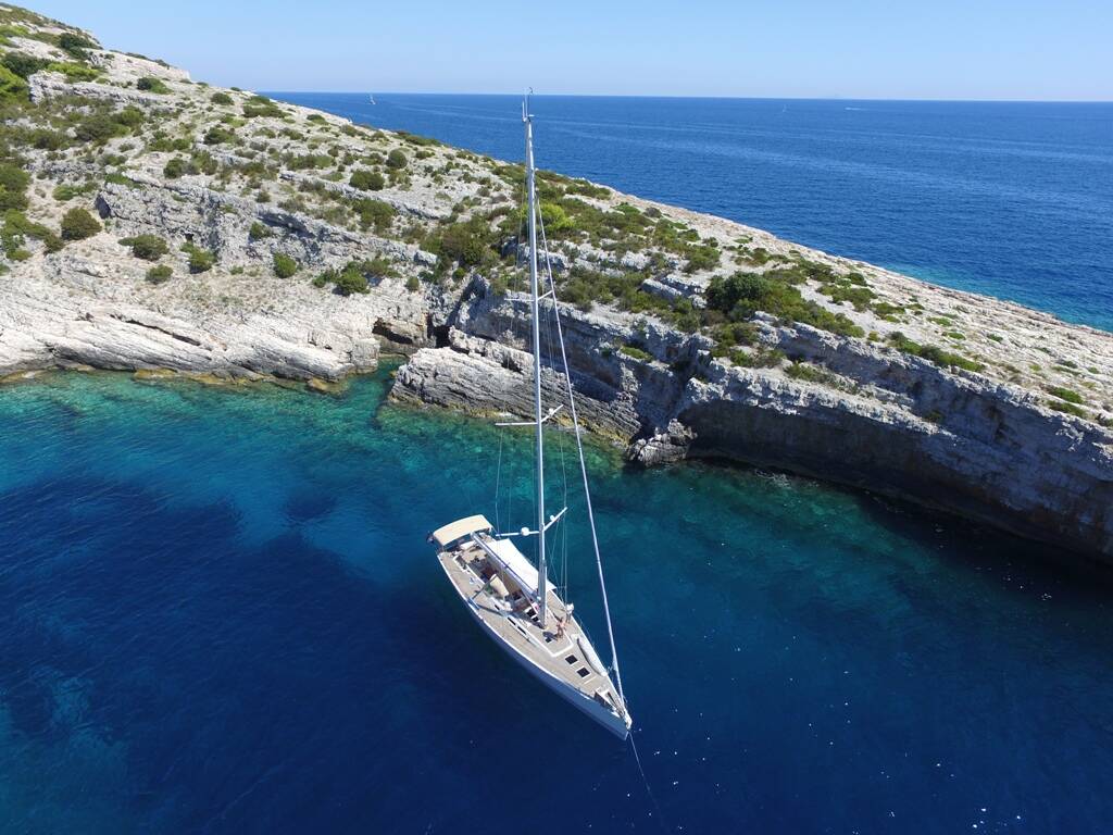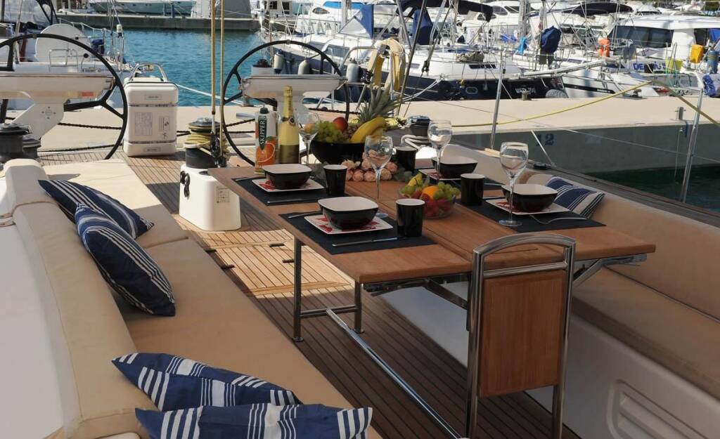 Sailing yacht X-65 Eline, built in 2010 is anchored in the Trogir, Split region, Croatia. It has 3 cabins, can accommodate 6 people and has 3 toilets. Bed linen and kitchen equipment are included in the price.